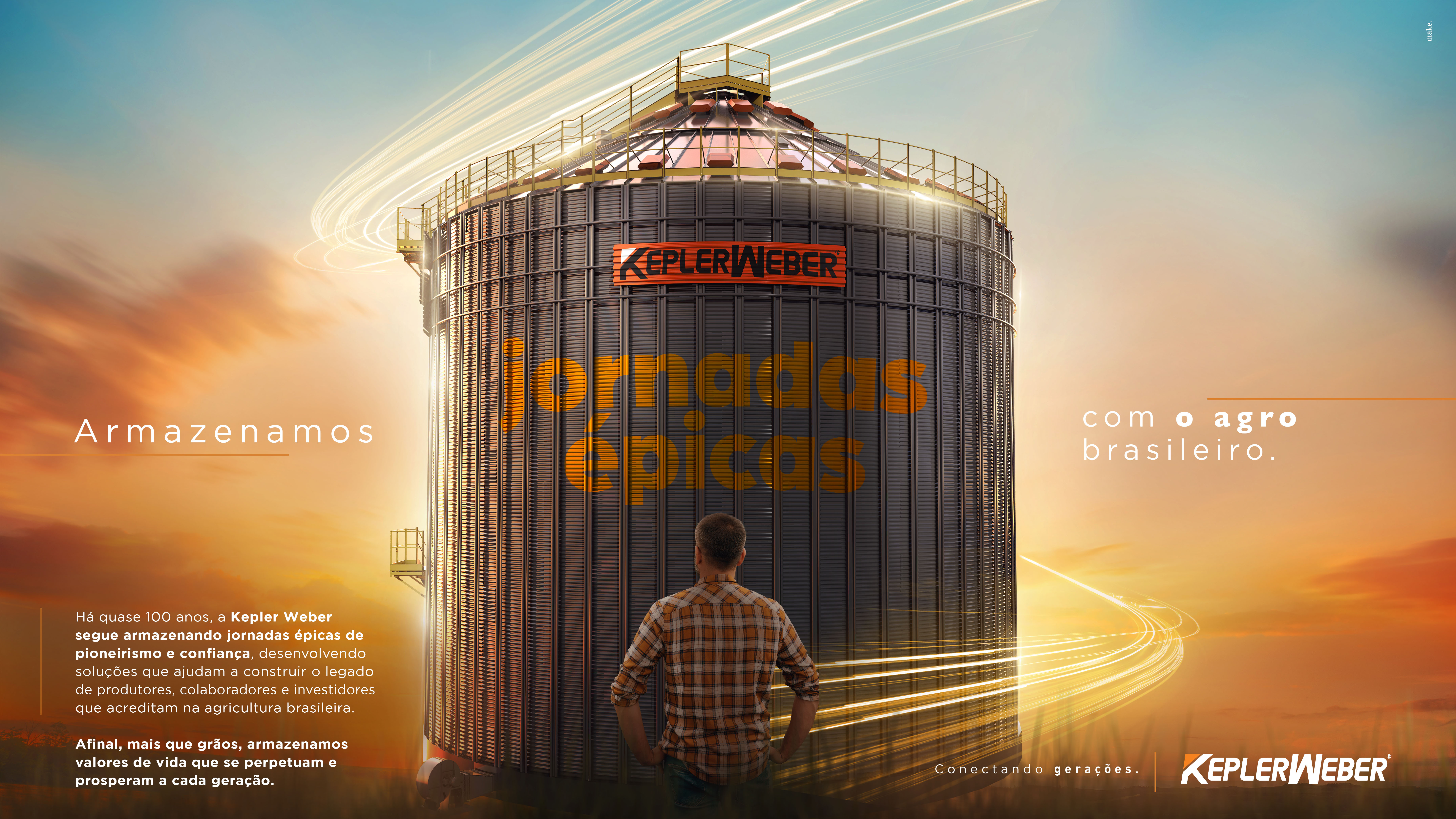 Criamos o conceito “Jornadas Épicas”, que valorizou as histórias humanas e reais por trás da trajetória da Kepler Weber. A campanha se desdobrou em múltiplas frentes, unindo ações internas, projetos de conteúdo em digital, ativações presenciais em datas comemorativas, impressos de alto padrão e até mesmo músicas autorais, sempre conectando passado, presente e futuro.